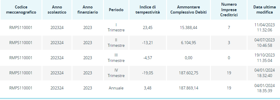 Gli indici di tempestività dei pagamenti sono pubblicati in Scuola in chiaro